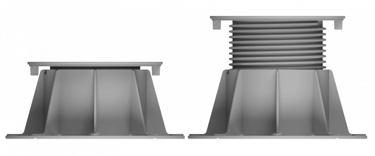 Un sistem reglabil flexibil de pavaj și piedestal de pardoseală conceput pentru înălțimi între 18 mm și 1083 mm.