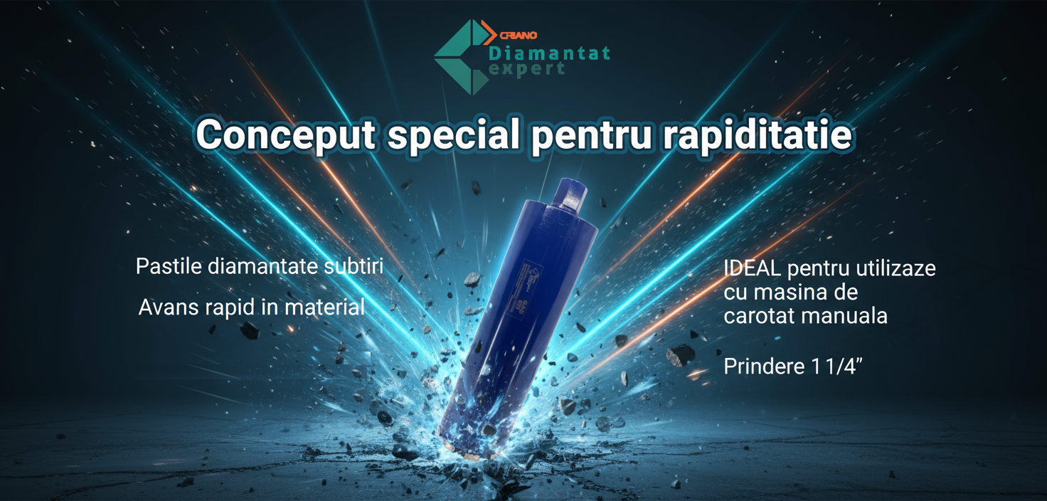 Descriere: Special concepute pentru o viteza mare de gaurire impreuna cu masini de carotat tinute in mana (manuale) sau masini de mica putere (2-3kW). Segmenti turbo cu profil îngust sudati cu laser pentru o viteza mare de gaurire chiar si cu masini de dimensiuni sau puteri reduse.