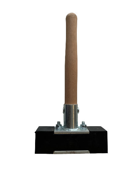 Ciocan de cauciuc negru cu maner scurt si 2 capete patrate plate pentru a nivela cu usurinta pietrele de pavaj.