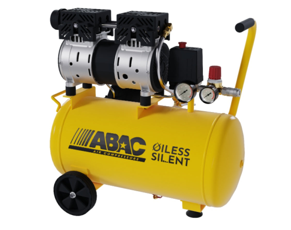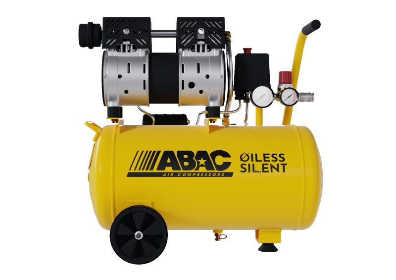 Compresor de aer cu piston fara ulei, silentios - 0.75 kW, 130 L/min, 8 bari - Rezervor 24 Litri - ABAC-POLE-POSITION-XT-SIL-10-YELLOW