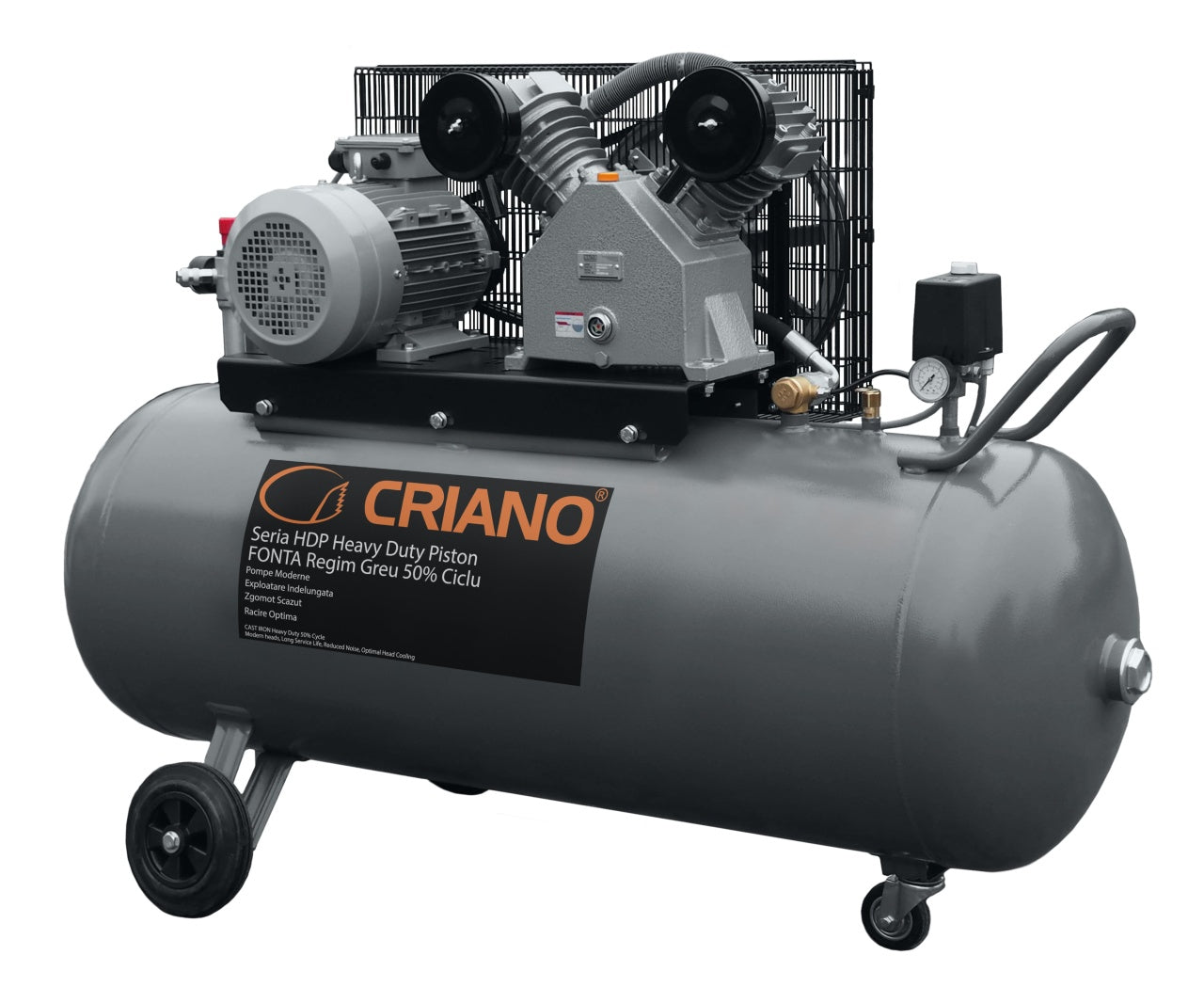 - Compresor profesional CNO-HDP, cu piston din fontă, amplasat pe un rezervor orizontal. - Dorim să vă anunțăm că începem distribuția de compresoare din seria CNO-HDP cu o nouă linie de pompe cu piston. Au fost proiectate de partenerii noștrii în funcție de experiența noastră acumulată de pe piață. Au trecut testele riguroase efectuate de la începutul anului 2024 și au intrat acum în producție.