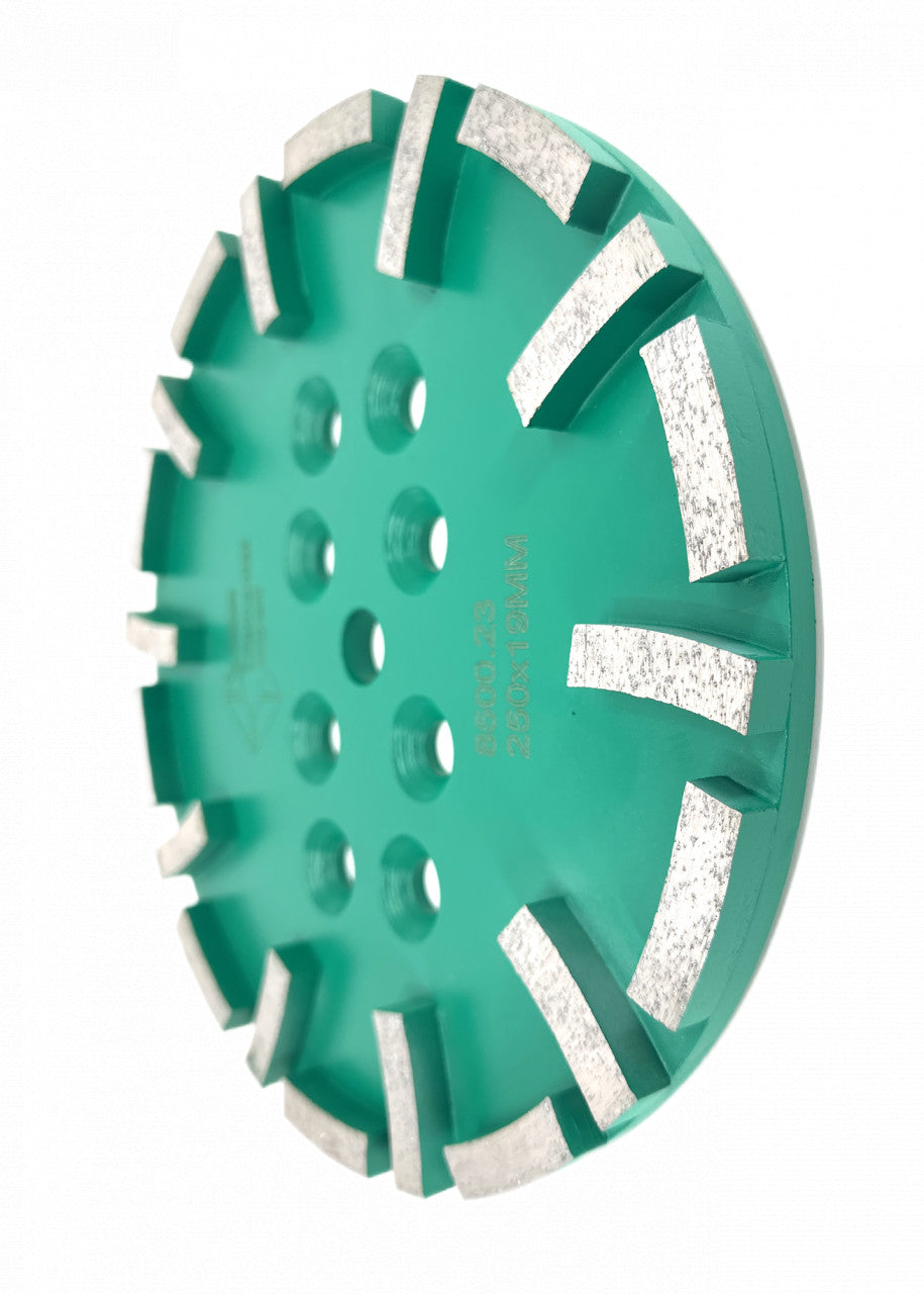 Disc cu segmenti diamantati pt. slefuire pardoseli - segment dur - Verde - 250 mm - prindere 19mm - DXDY.8500.250.23