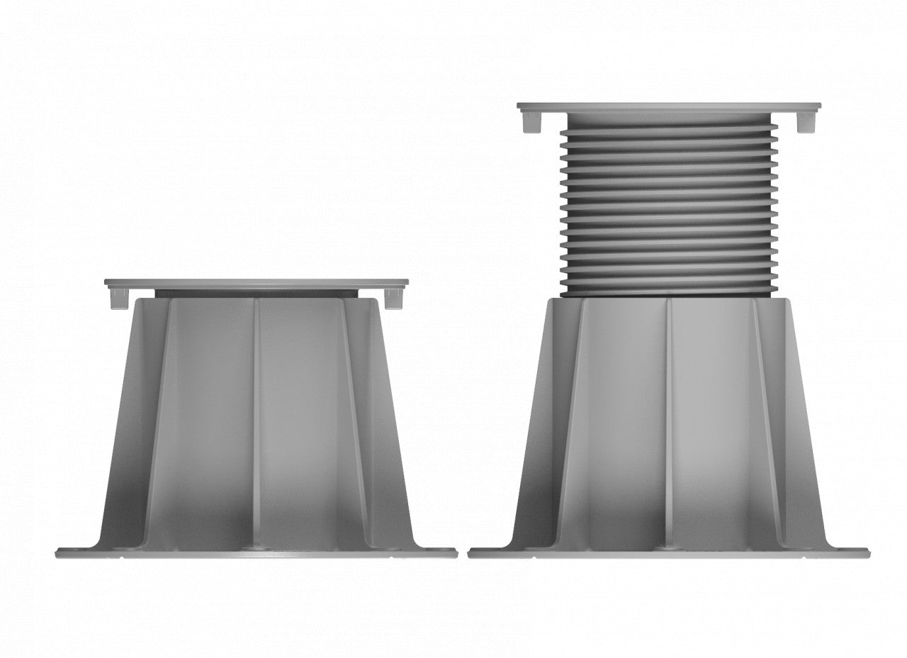 Un sistem reglabil flexibil de pavaj și piedestal de pardoseală conceput pentru înălțimi între 18 mm și 1083 mm.