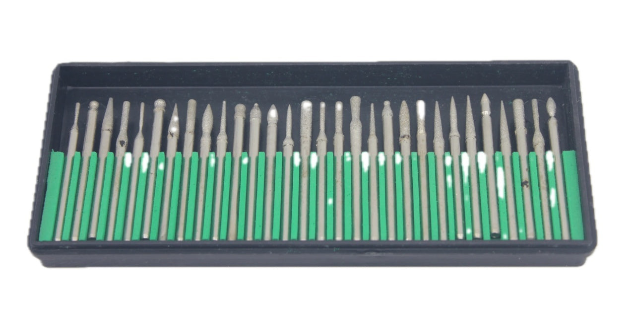 Acesta este un set profesional de 30 de freze diamantate, conceput pentru șlefuirea suprafețelor din ceramică și gresie. Frezele sunt fabricate din oțel de înaltă calitate cu particule abrazive diamantate, ceea ce le face durabile și eficiente pentru diverse aplicații. Acestea au o tijă de prindere universală de 3,2 mm pentru compatibilitate cu mașina CRIANO MPU350W și alte unelte similare.