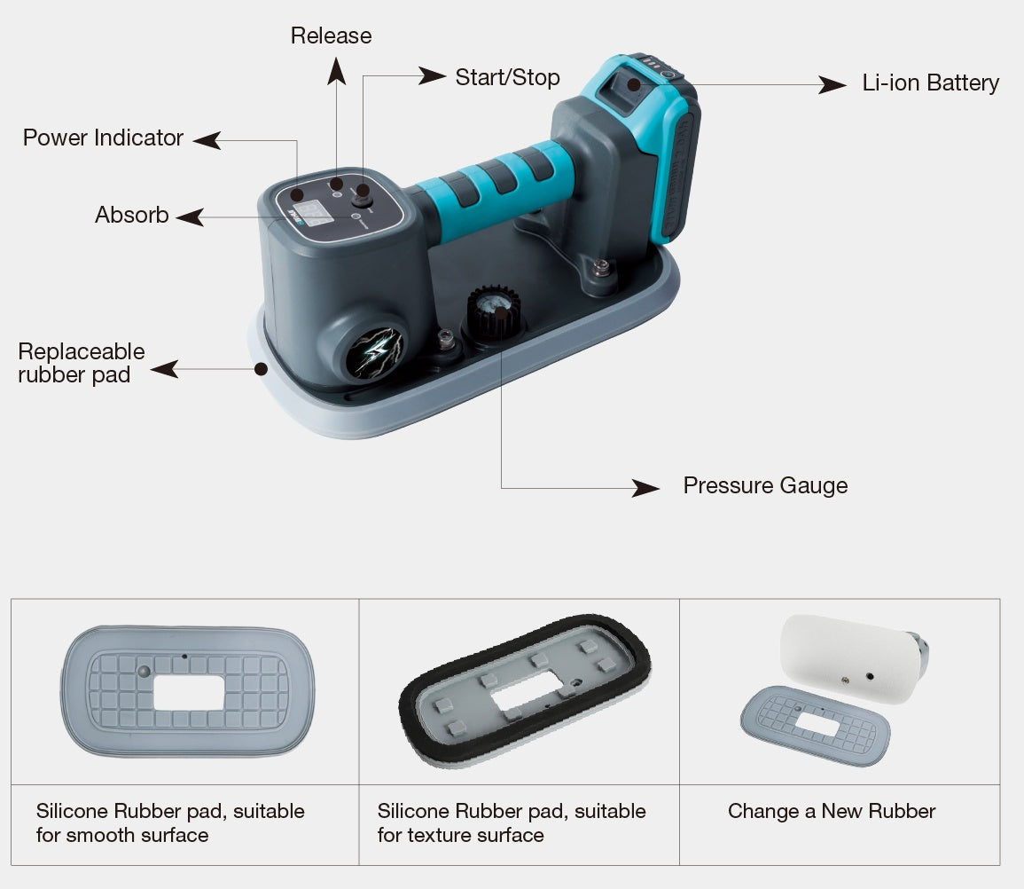 Ventuza Vacuum Electrica Automata, afisaj digital si acumulator 21V, pt. placi texturate - capacitate 170kg - BIHUI-LFBSL