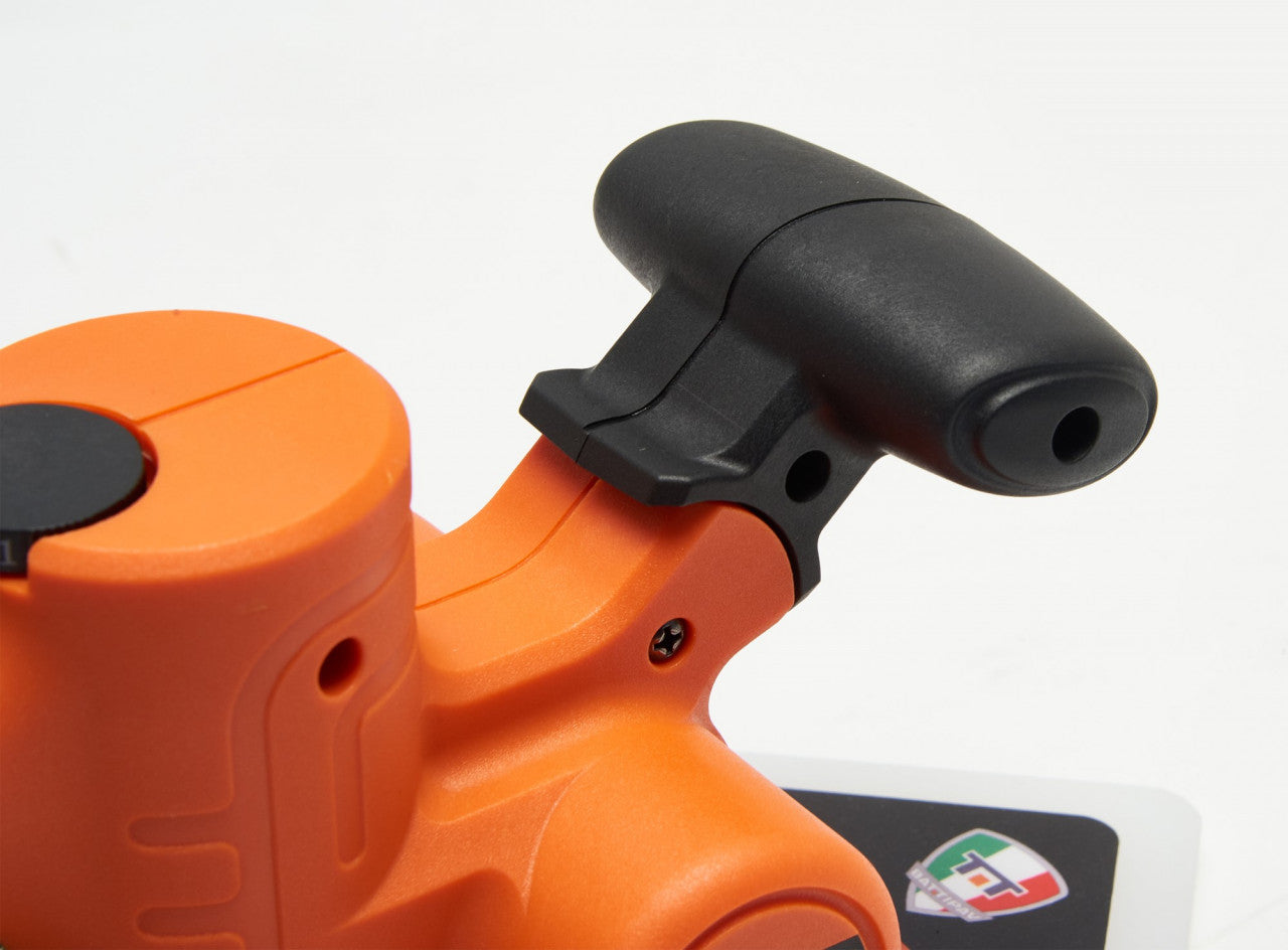 Apăsați butonul cauciucat alb de pe mâner.
